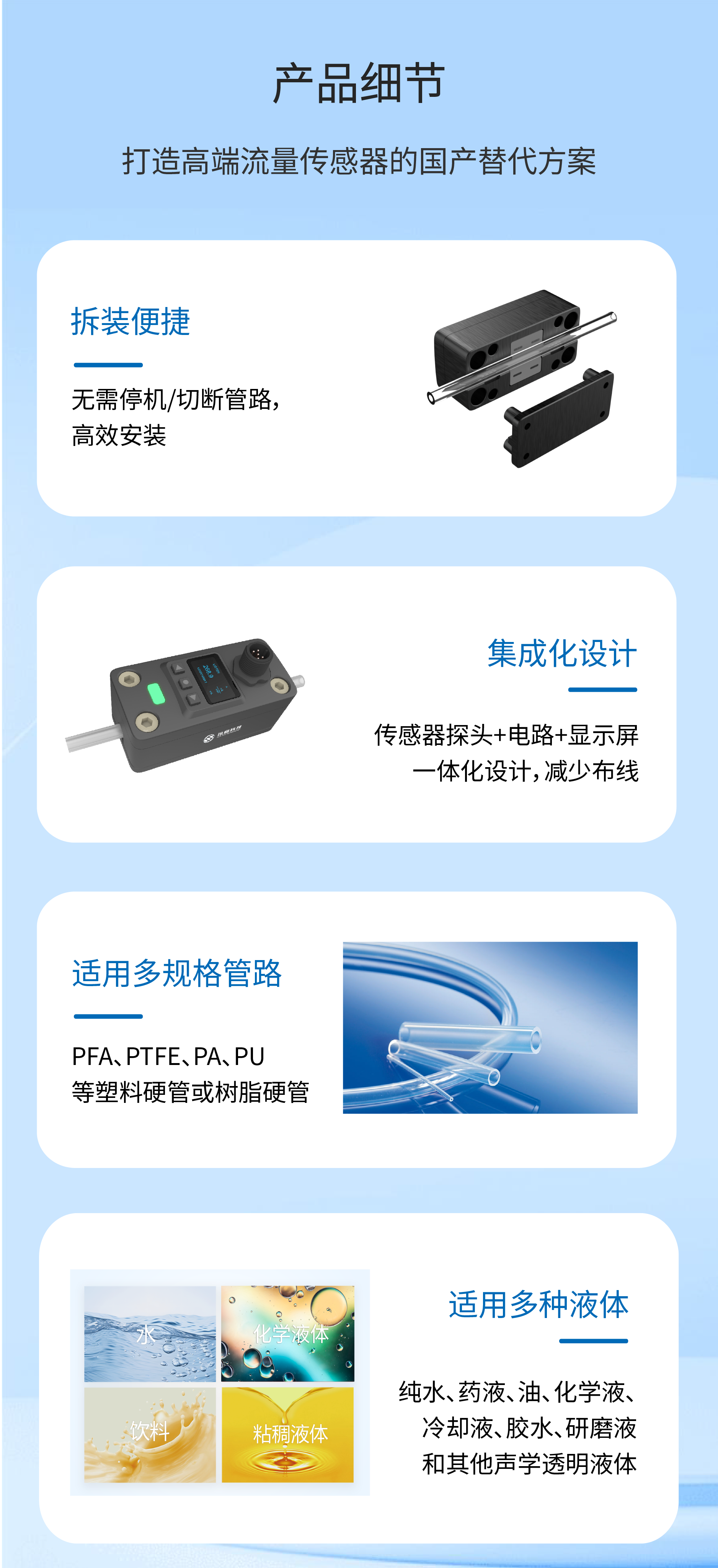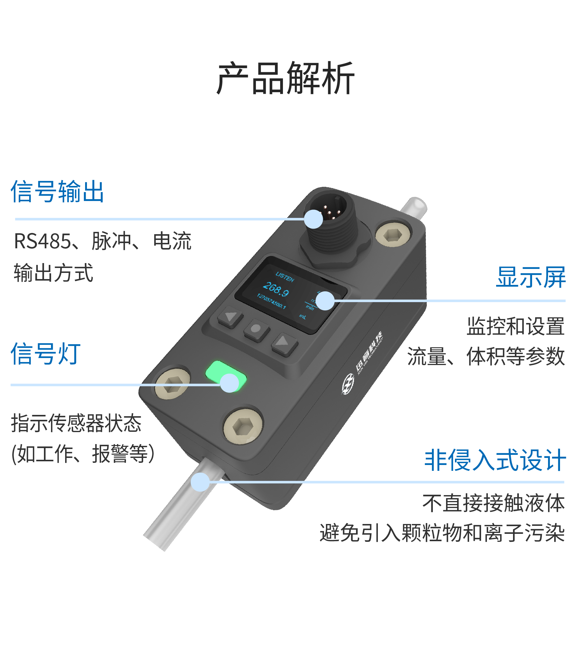 CPD外夹式超声波流量传感器|非接触测量纯水,药液,胶水,研磨液……